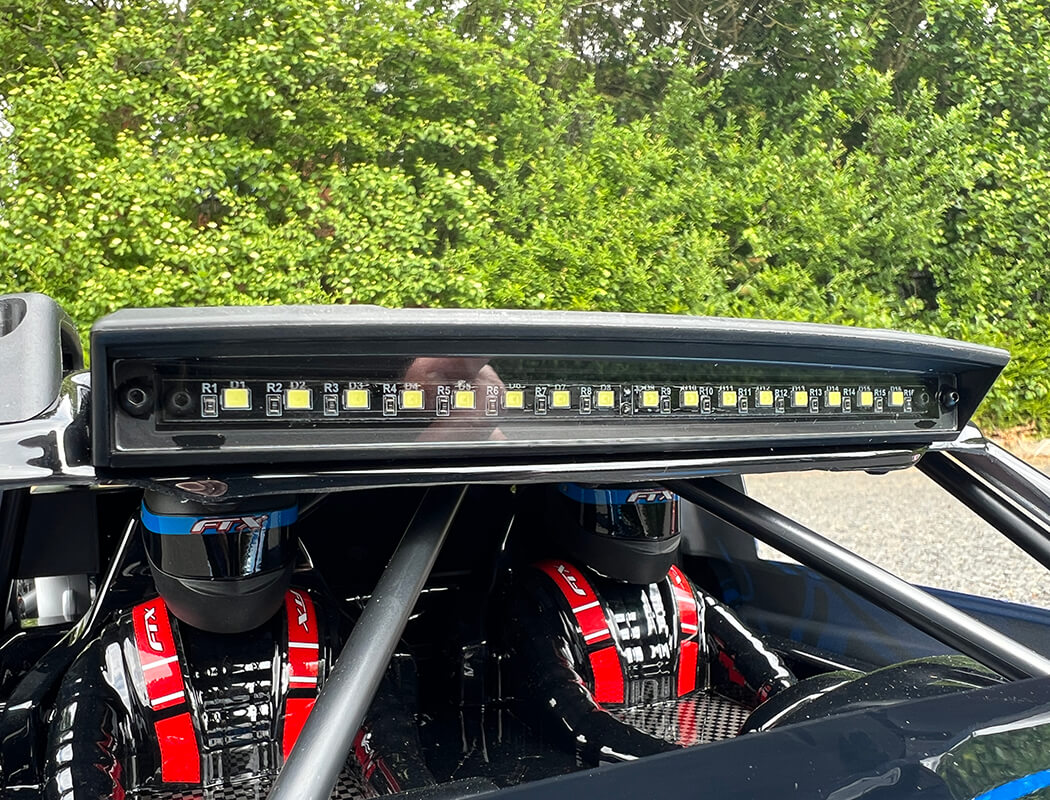 Inspirerad av ökenloppens trofébilar har Grand Apache mängder av realistiska detaljer. Fabriksmonterade led-ljusramper i grillen och på rullburen lyser upp vägen, medan ett bakre bromsljus tänds vid inbromsning. Skulle du få punktering finns två fullt fungerande reservhjul monterade på en robust bakre rullbur tillsammans med brandsläckare, stötdämparreservoarer och kylfläktar. Inuti finns en detaljerad cockpit med förare, kartläsare och instrumentpanel.